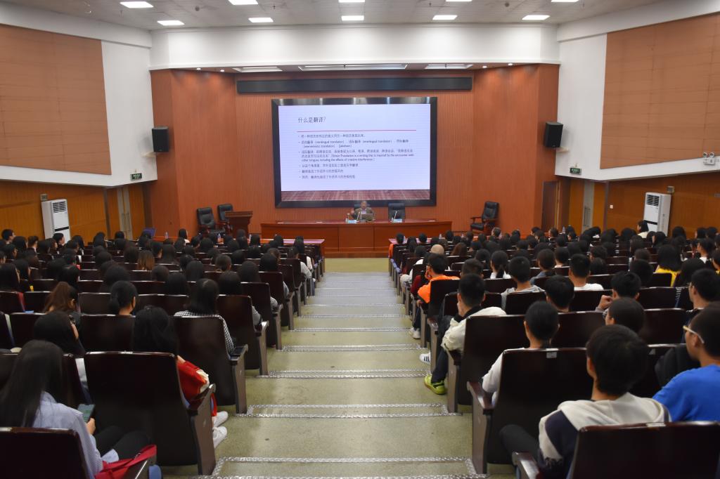 王东风教授首先从翻译的概念,翻译的分类导入,谈到翻译学习的重要性和意义,翻译意味着“对外交流”“取长补短”“知己知彼”。王教授引用季羡林先生的话来说明翻译与中华文明的关系:“中华文化这条长河,有水满的时候,也有水少的时候,但却从未枯竭。原因就是有新水注入。最大的有两次,一次是从印度来的水,一次是从西方来的水。而这两次的大注入依靠的都是翻译。中华文化之所以能常葆青春,万应灵药就是翻译。翻译之为用大矣哉!” 王教授指出从中国汉唐以降的历史可以看出,中国国运兴衰的曲线与翻译事业兴衰的曲线若即若离,大体一致。从当代翻译学的角度来看,一个国家重视不重视翻译是这个国家是否开放的一个标志;由于翻译可以引进新的知识,因而可以刺激和推动本土的社会发展;因此,如果一个国家在翻译上不作为,则意味着这个国家与外界失联,从而失去了与发达国家同步发展的机会,社会意识形态便会变得固步自封,久而久之便会积弱而亡。一个国家的兴衰史,就是一部翻译史;对一个国家来说,“译”损俱损,“译”荣俱荣。