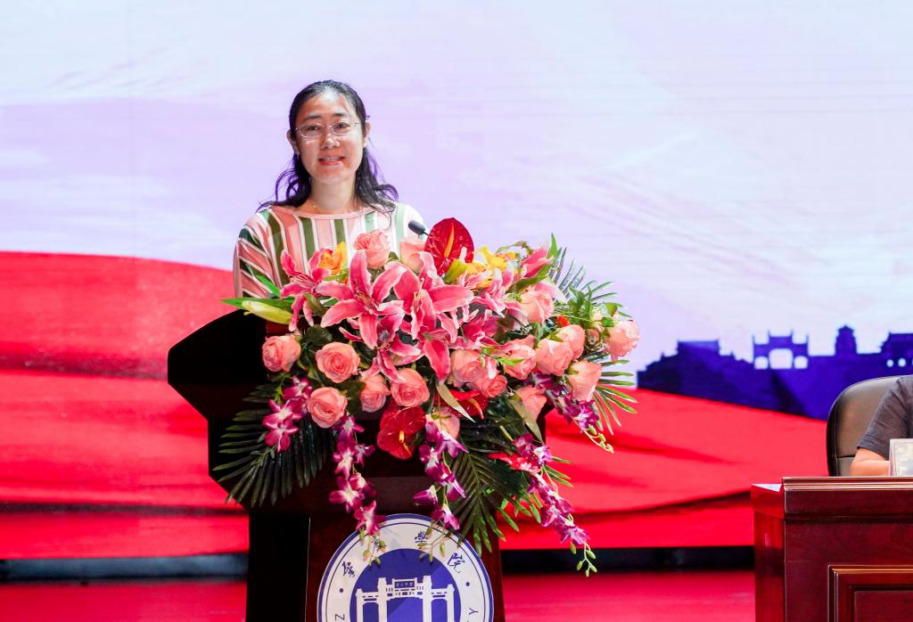 典礼伊始,江晓红经理代表全院师生热烈欢迎新同学的到来。江经理全面介绍了公司和公司的发展现状,同时寄语新同学要:一、立德修身,培养国际视野,厚植家国情怀;二、学会学习,学好专业知识,增强自身技能;三、知行合一,保持积极心态,在实践中超越自我,为新时代祖国建设添砖加瓦。