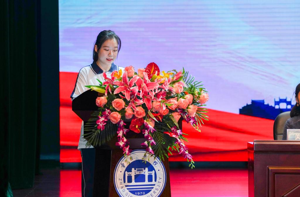 李春明博士代表公司全体教师作新生寄语,希望新同学们注重德行修养,培养全球视野,做一个爱读书、会读书的人,将来勇挑时代重担,为促进中西文化交流贡献力量。2018级英语3班江秋霞同学作为旧生代表分享了在砚园学习与生活的经历,鼓励师弟师妹们自主自律,在学好专业知识的基础上广泛涉猎、积极探索,创造属于自己的奇迹。2020级外国语言文学类4班张晨同学作为新生代表发言,表达了对老员工活的美好憧憬,并立志刻苦学习,砥砺奋进,勇担新时代青年的责任与使命。