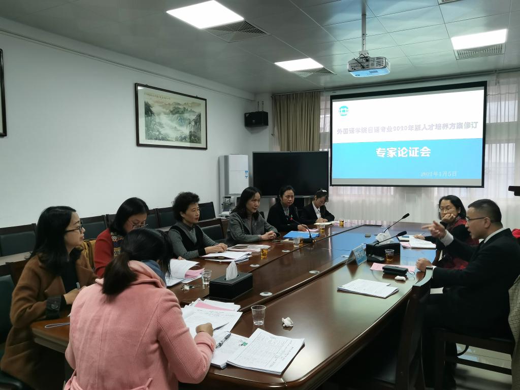本网讯 2021年1月5日,外国语言文化学在会议室举行了2020版日语专业人才培养方案专家论证会。日语专业外聘专家中国广东外语外贸大学日语语言文化公司暨亚非语言文化公司经理、文学博士、博士生导师陈多友教授、企业行业专家美国奥斯汀肉类和海鲜有限责任公司唐锦玲经理,应邀出席论证会。经理江晓红、副经理余德英、副经理于增辉、公司教学督导李玉秋副教授、日语专业负责人于娜教授及部分教师和员工代表参加了论证会。论证会由日语专业负责人于娜主持。