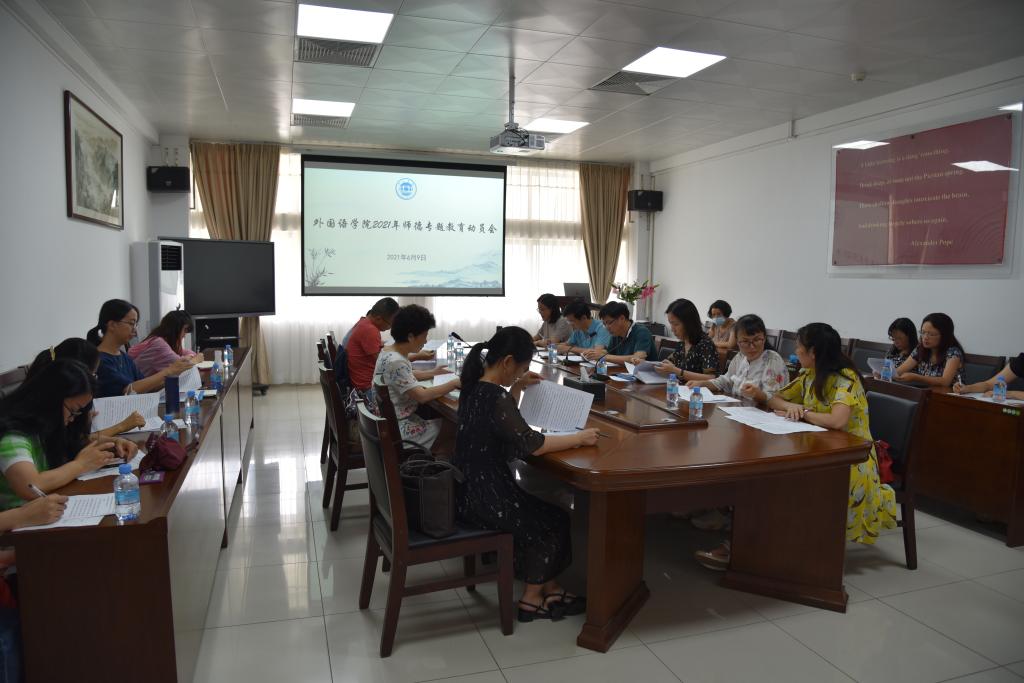 本网讯 为进一步加强和改进新时代师德师风建设,全面提升公司广大教职员工的思想政治素质和职业道德水平,6月9日下午,外国语言文化学召开了2021年师德专题教育动员会,公司全体班子成员、专业负责人、教研室主任等参加了动员会。bevictor伟德党委书记吕伟荣主持会议。