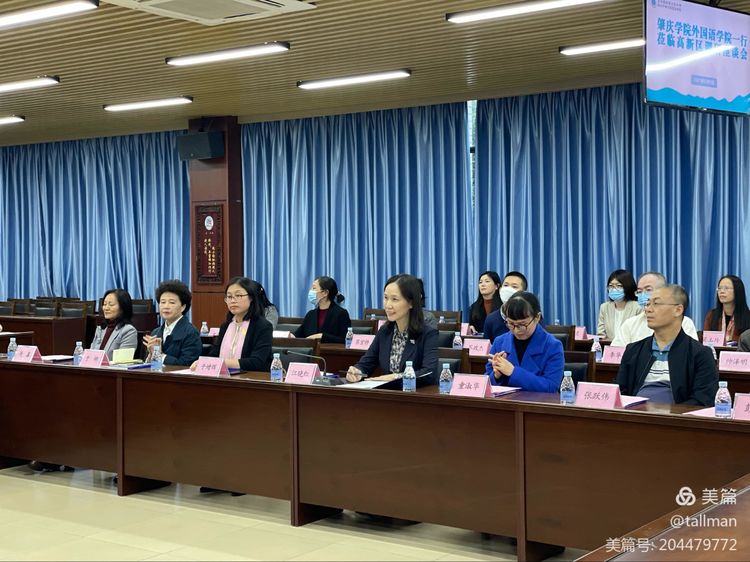 在座谈会上,高新区经济贸易和科技局副局长刘勤、区人才服务中心主任吴雨果就新区跨境电商发展情况和趋势、区专业人才政策、外语专业人才需求情况进行了介绍。区教育局局长段宝生、大旺中学董事长李小徐、高新区实验小学董事长蒋曹斌和部分中小学骨干教师分别就高新区教育发展情况、大旺中学办学情况、中小学英语课堂教学、教研及面对的困境进行了介绍和探讨。管委会副主任林晓东对考察团一行表示了欢迎,充分肯定公司“建设特色鲜明的高水平应用型大学”的办学定位,对外国语言文化学与肇庆高新区的合作切入点进行了深入分析,并提出中肯建议。