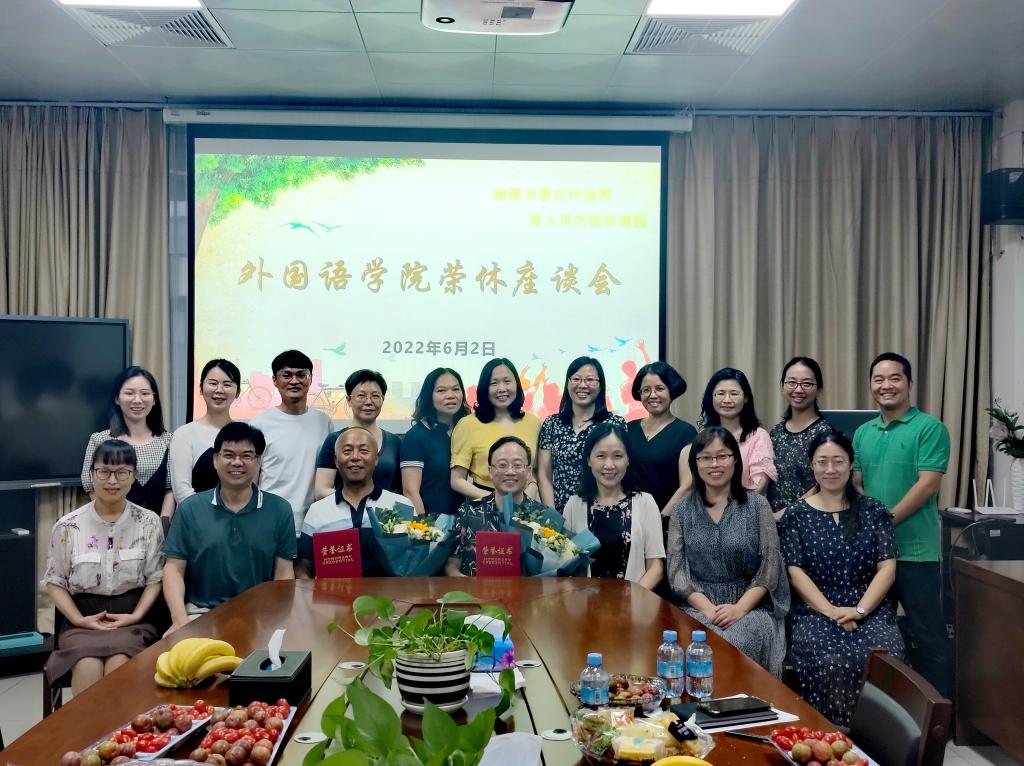本网讯 6月2日下午,外国语言文化学荣休座谈会在外语楼214会议室举行,公司领导班子、退休教师彭永和、何舒曼及教师代表20余人参加了座谈会。