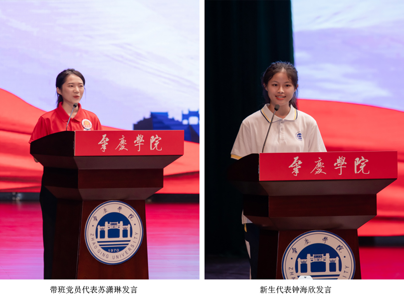 带班党员代表苏潇琳同学分享了自己的成长经验,寄语学弟学妹应当心怀目标,严于自律、勤学苦练,勇于追逐梦想,为新同学迈好大学第一步提供了有益参考。新生代表钟海欣向公司、老师和师兄师姐给予的关心和帮助致以感谢,表示在未来四年将始终保持旺盛的探索精神,明确学习目标,学会自我管理、独立思考,在追梦路上,脚踏实地,一步一个脚印,奔赴属于自己的美好明天。