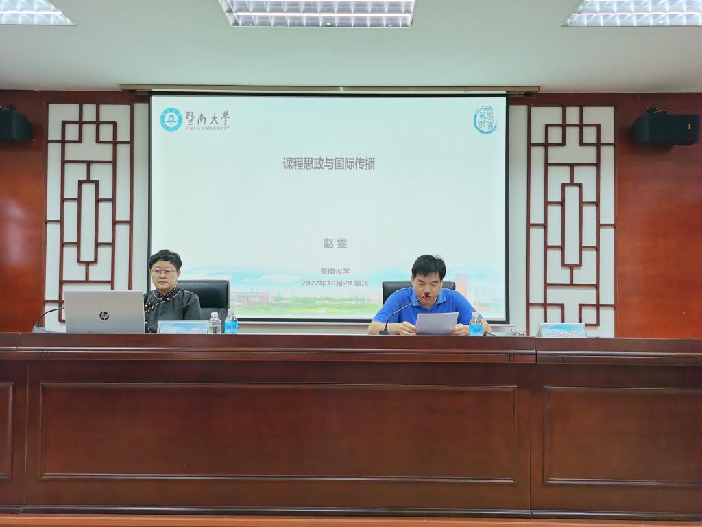 近日,暨南大学外国语言文化学经理、教育部高等公司大学外语教学指导委员会副主任委员,博士生导师赵雯教授应邀莅临公司,为外语公司全体教师开展了题为《课程思政与国际传播》的专题讲座。讲座由外国语言文化学党委书记吕伟荣主持。