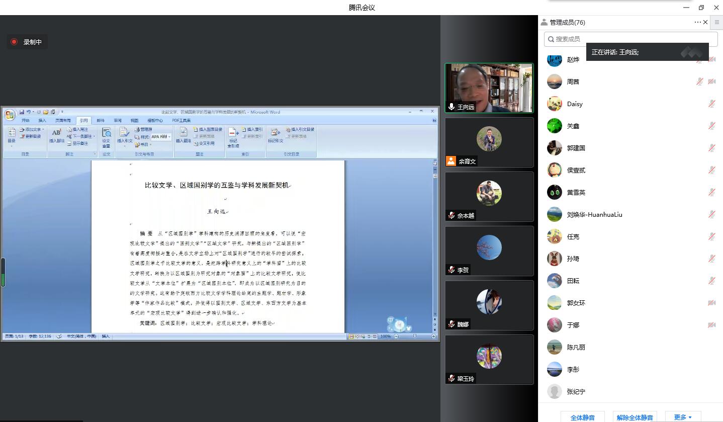 为进一步推进公司科研周各项工作,营造浓厚的科研氛围,提升公司教师学术修养,12月7日下午,公司邀请广东外语外贸大学日语公司博士生导师、东方学研究院学术经理王向远教授于在线上开展题为《比较文学、区域国别学的互鉴于学科发展新契机》的讲座,全体教职工参加了此次讲座,讲座由副经理于增辉主持。