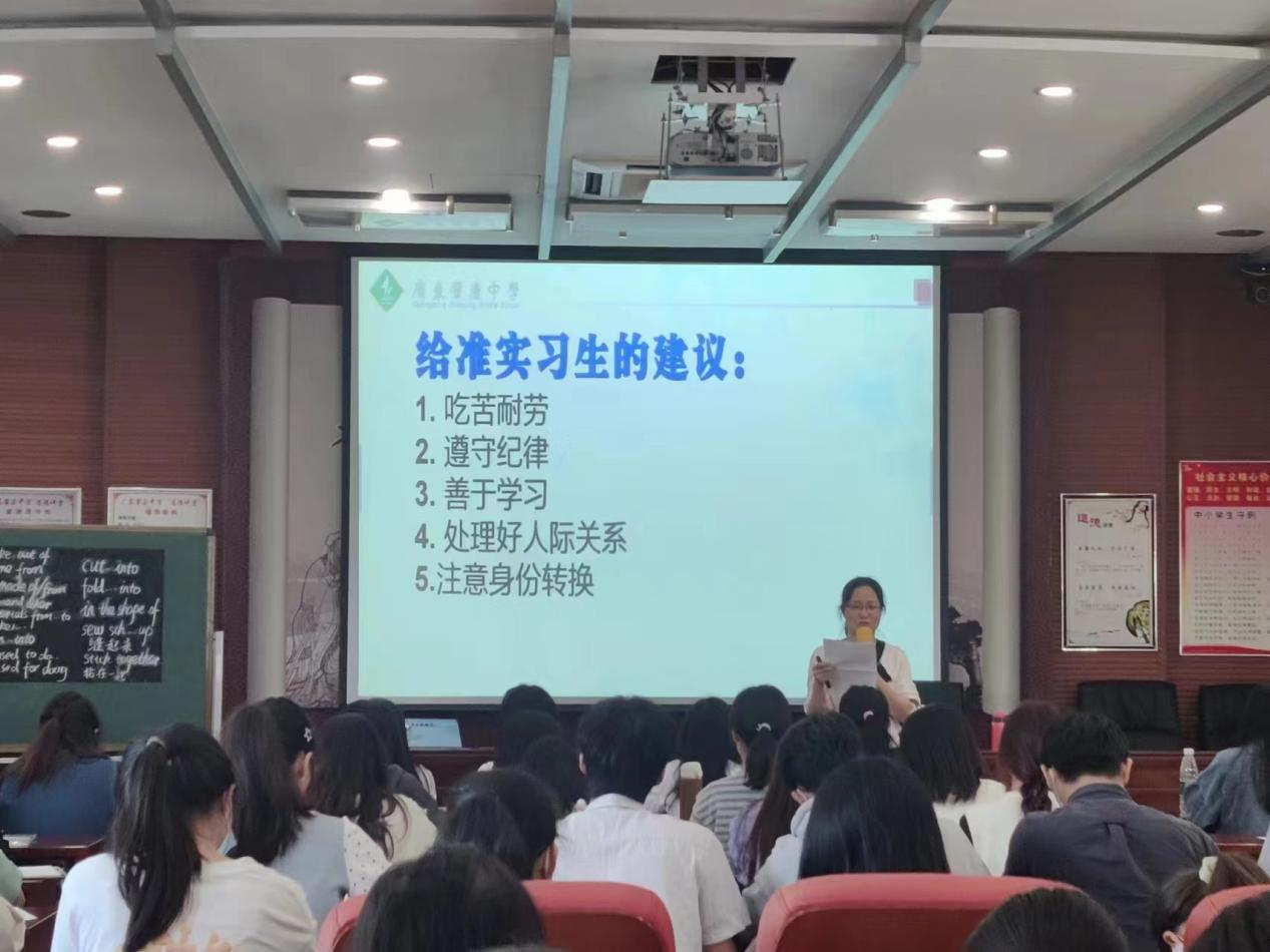 为了全面落实立德树人的根本任务,大力夯实公司英语师范专业员工知识技能,帮助英语师范生完成见习实践课程,2023年3月17日由英语专业负责人罗文萍、见习指导老师孙琦和20级专职辅导员杨涛三位老师带领2020级英语师范班秋季实习员工到广东肇庆中学府城校区见习。同学们先是观摩了肇庆市徐华芳名师工作室入室学员李肇芳老师的Rethink,Reuse,Recycle示范课。在示范课中,李老师以流利的英语和生动的教学方式向员工们展示了英语阅读的魅力和重要性。接着,同学们聆听杨李杏老师给准实习生的微讲座,帮助同学们更好地了解实习情况,并针对实习过程中可能遇到的实际困难和问题地给予了建议和对策。