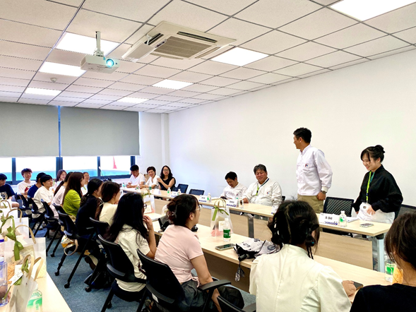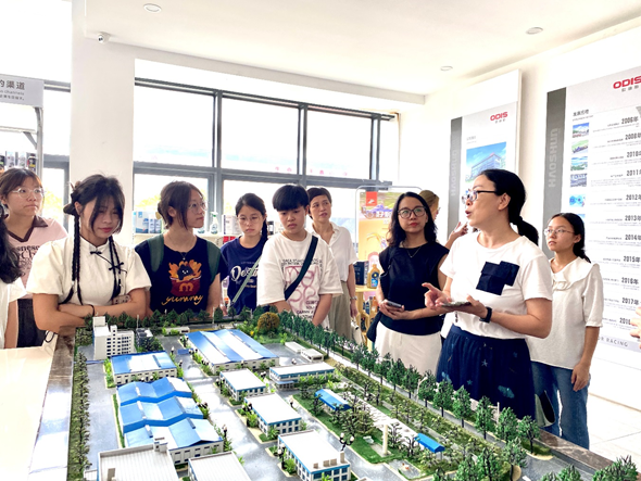 广东好顺欧迪斯科技股份有限公司人事经理王晓靓和不二制油(肇庆)有限公司厂长小川和宏对师生们表示欢迎,带领师生参观生产车间和品牌展览室,并分别介绍了企业的整体情况、发展历程和对日语人才需求。