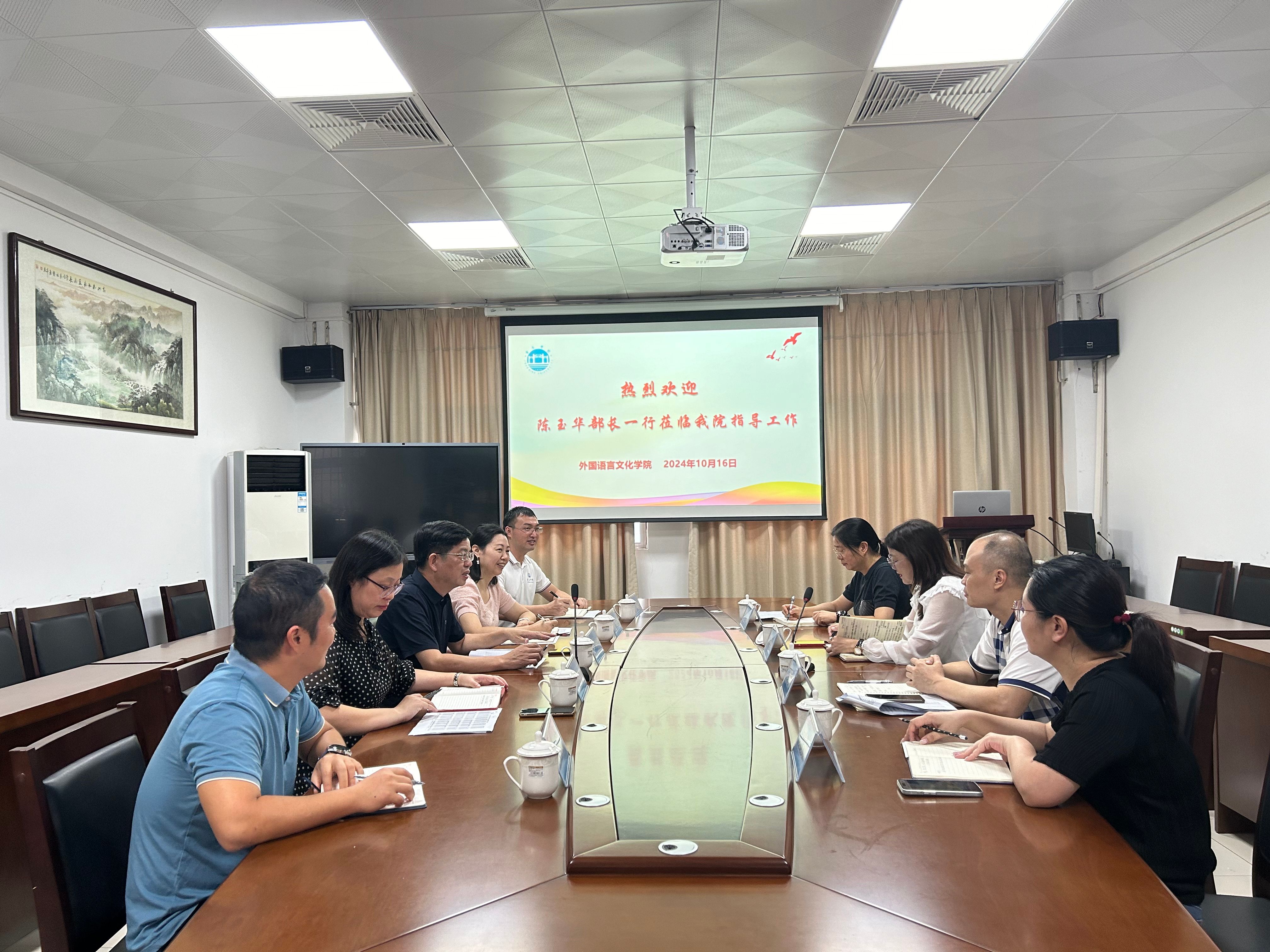在调研活动中,陈玉华部长详细了解公司明年招生计划情况,特别是对如何科学合理地设置招生专业、招生规模等具体事项提出意见和建议。同时她还深入了解公司在特色班建设方面的新思路与举措,认为通过特色班的开办及“外语+”人才培养模式,能进一步提升公司办学优势,激发员工的潜能与兴趣,吸引更多优质生源报读公司。陈玉华部长指出,招生工作是提升公司生源质量,推动公司产品高质量发展的核心环节,也是促进公司发展的坚实基础,需要各单位高度重视,提高站位,高标准落实好公司招生工作任务安排。