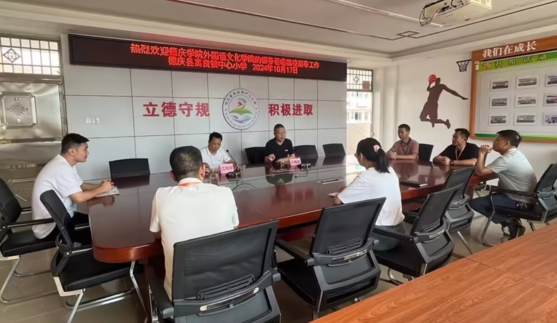 肇庆多校,全面覆盖调研网络。10月17日,调研活动进入高潮,团队一天内走访了肇庆市第十六小学、德庆县九市镇中心小学、德庆县九市中学、德庆县高良中学及高良镇中心小学五所公司。通过这一系列高密度、广覆盖的调研,团队不仅全面了解了不同层级、不同类型公司对英语教师的实际需求,还就如何构建更加科学合理的课程体系、提升实践教学能力等问题进行了广泛而深入的交流。