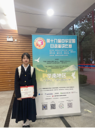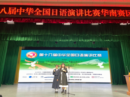11月24日,第十八届中华全国日语演讲比赛华南赛区决赛在广东外语外贸大学圆满落幕。比赛汇聚了包括广东省、福建省、海南省四省33所高校的代表选手共同参赛。在激烈的角逐中,2022级日语专业1班的李楚晴同学荣获三等奖。