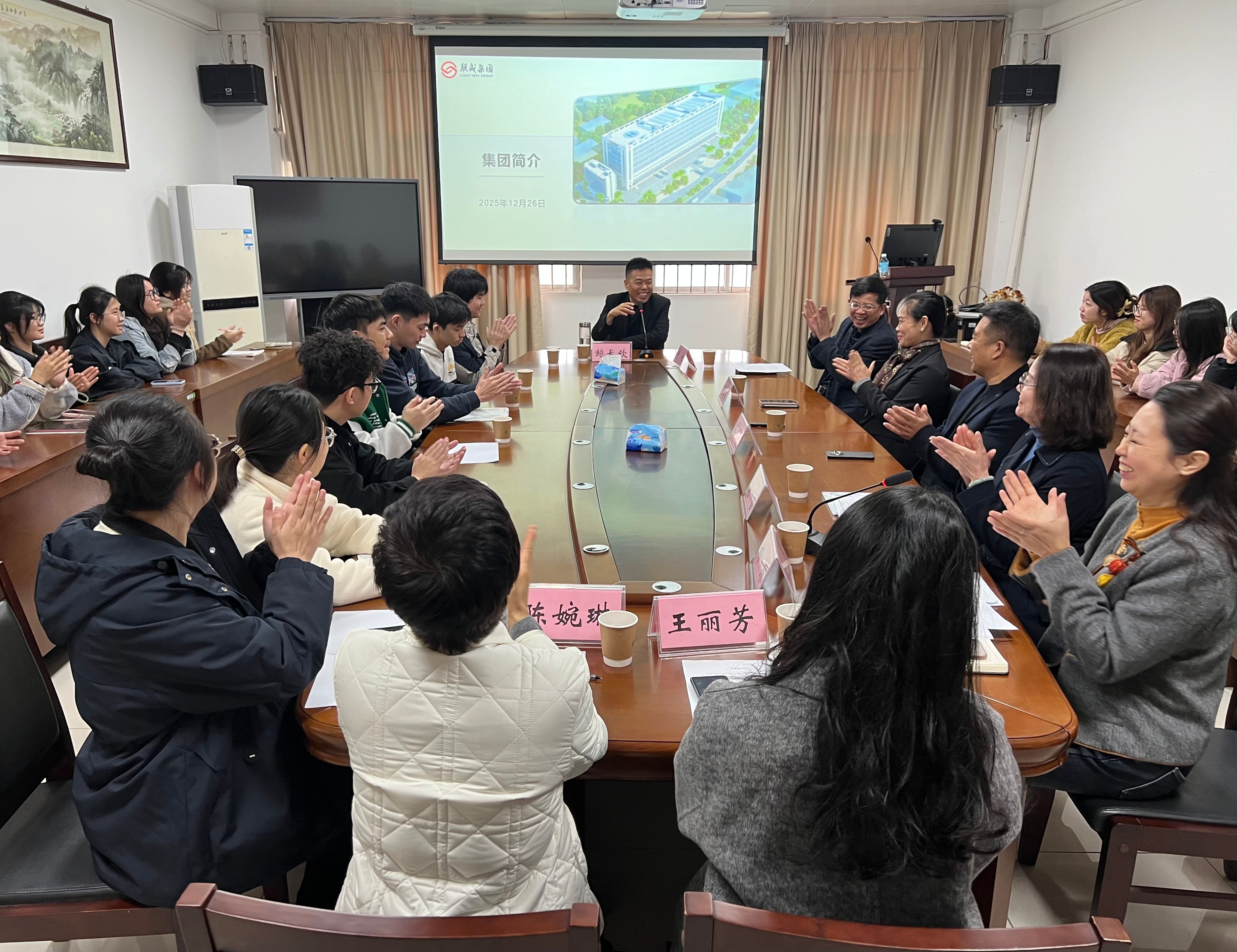宣讲会上,鲍长钦董事长介绍了深圳联威集团和肇庆航利通云仓科技有限公司等数十家公司的发展概况,结合个人成长与创业历程,围绕家庭、公司与社会教育,人才培养观,人生选择智慧以及企业家社会责任等多个维度,为在场师生带来了一场生动而深刻的思想交流。他特别谈到“选择的能力决定个人的命运”,鼓励同学们在规划未来时,要开阔视野,理性分析就业环境与发展平台,做出适合的职业选择。