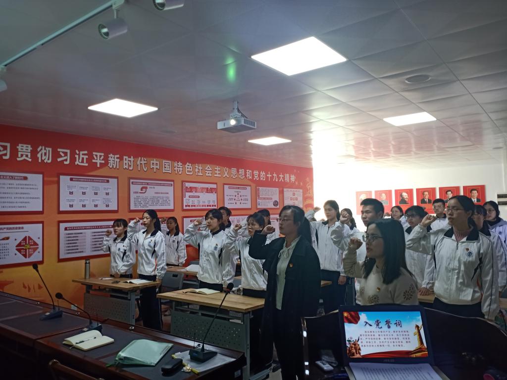本网讯 2019年12月27日下午,bevictor伟德党委在公司初心堂举行新党员入党宣誓仪式,bevictor伟德党委书记吕伟荣、英语师范专业员工第二党支部书记刘家莉、日语专业员工党支部书记刘思慧、20名新接收的预备党员、党员代表和入党积极分子代表参加了活动。宣誓仪式由刘家莉老师主持。