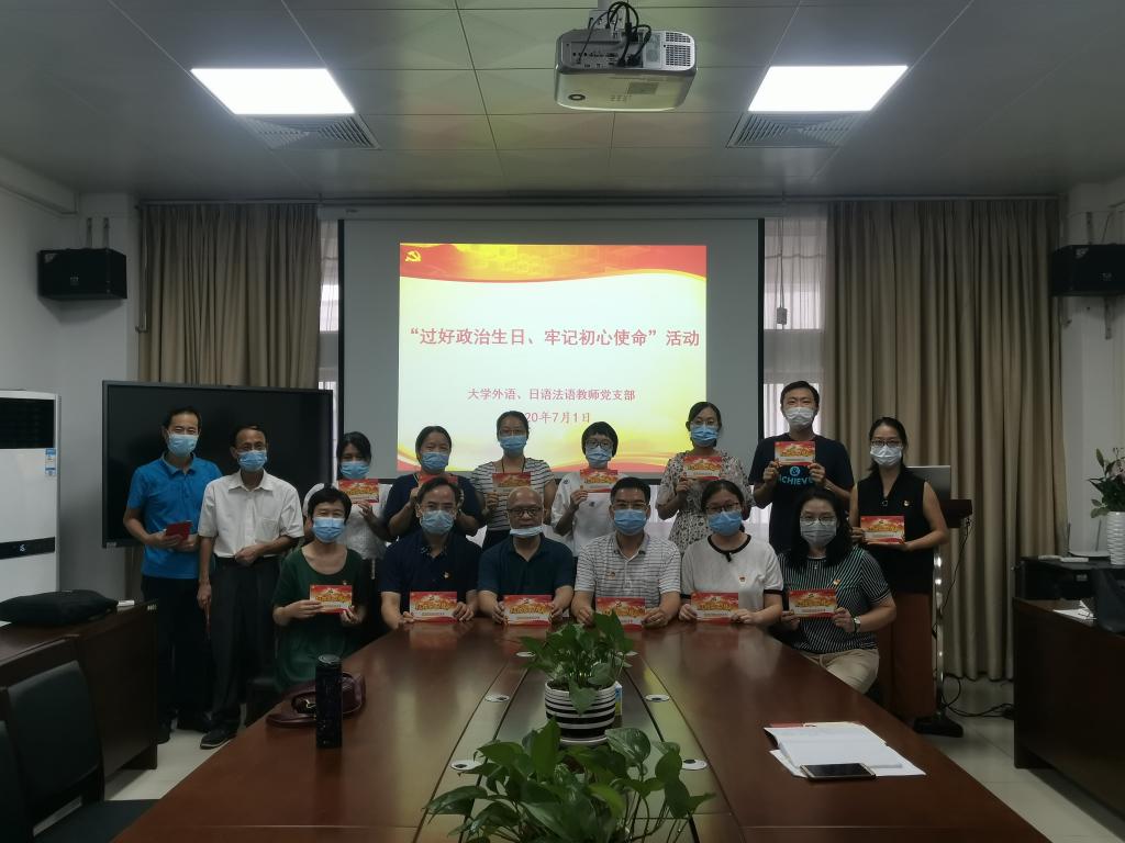 本网讯 2020年7月1日,一个特殊的日子:中国共产党成立99周年!外国语言文化学英语专业教师党支部和大学外语、日语法语教师党支部全体党员齐聚一堂,开展“迎党的生日,讲战疫故事,悟初心使命”专题组织生活会,通过分享战疫身边故事、颁发党员政治生日贺卡和重温入党誓词等活动形式向党的生日献礼。