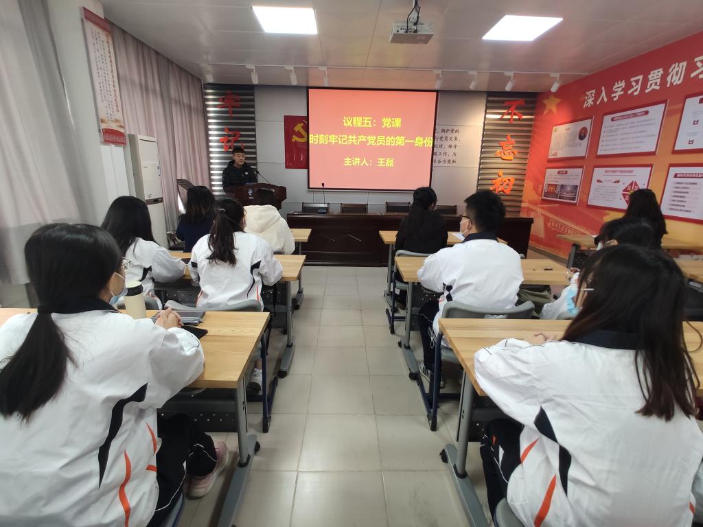 王磊老师对新发展的预备党员表示祝贺,并围绕“时刻牢记共产党员的第一身份”主题向新党员上党课。王老师对新党员提出“三个身份”和“三个意识”的要求,并强调,党的初心是由一个个党员个体的初心所承载的,只有广大党员都坚守初心,全党才能更好地永葆初心,勉励新党员们要更加自觉地为新时代党的历史使命而努力奋斗。