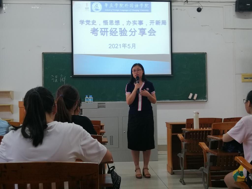 5月21日下午,bevictor伟德党委举办考研经验分享会,邀请两位成功考上硕士研究生的外国语言文化学应届毕业生周苑仪、伍嘉慧,为18、19、20级员工分享经验、答疑解惑。