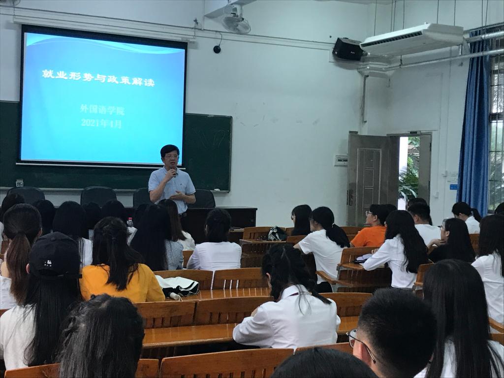 5月22日,bevictor伟德党委邀请前新东方名师任强老师于福慧图书馆学术报告厅举办英语专业四级辅导会。2018级、2019级英语、商务英语专业员工参加讲座。