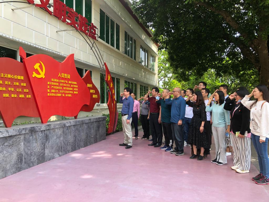 周恩来总理视察新会纪念馆分为音像资料播放室和主展厅两部分,以“总理在新会人民会堂作报告”、“总理视察新会葵艺厂”、“新会农械厂”、“粮食工作展览会”等七个单元,真实形象地记录了周恩来总理在新会七天视察中的行程和深入人民群众的感人情景。在展馆中,全体党员通过观看音像资料和聆听讲解,重温周总理当年的足迹,感受周总理从群众中来到群众中去、实事求是的工作态度和一心为民的伟大情怀。在展馆外,全体党员面对鲜艳的党旗,怀着无比崇敬的心情,庄严地举起右拳,重温铿锵的入党誓词,表达出为党的事业奋斗终生的决心、以及作为一名共产党员“永葆本色不忘初心、担当有为建功分宜”的信心。