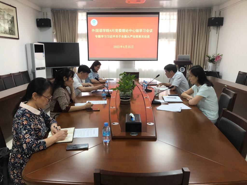 2022年4月25日下午,外国语公司党委开展理论学习中心组学习会,专题学习习近平总书记在十九届中央纪委六次全会上的重要讲话。bevictor伟德党委理论学习中心组成员参加会议。会议由公司书记吕伟荣主持。