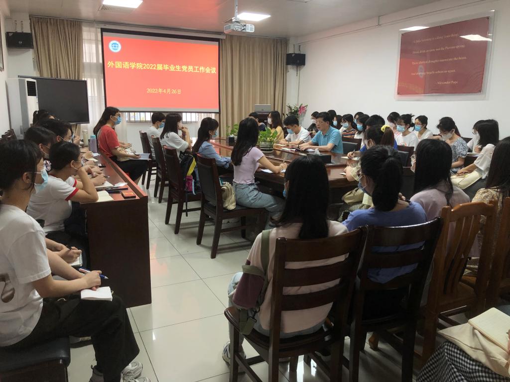 本网讯 4月26日,伟德源自英国1946外国语言文化学员工党支部开展主题党日活动,专题学习贯彻习近平总书记在中国人民大学考察时的重要讲话精神并开展毕业生党员工作座谈会,党委副书记卢咏主持会议。