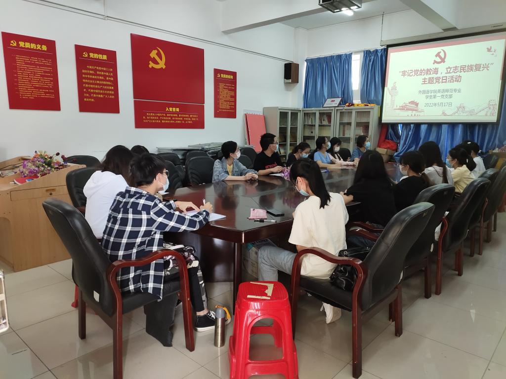5月17日下午,外国语言文化学英语师范专业员工第一党支部于外语楼213室开展“牢记党的教诲,立志民族复兴”主题党日活动,专题学习贯彻习近平总书记在中国人民大学考察时的重要讲话精神,并组织优秀毕业生党员作考研、考编经验分享。