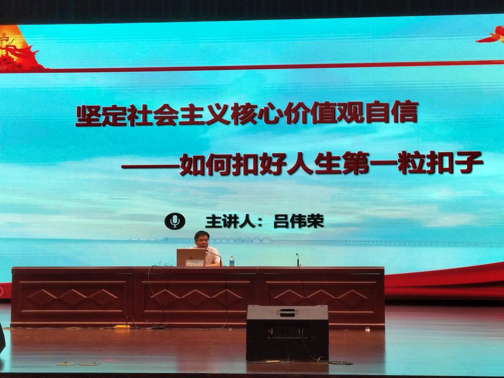 本网讯 9月19日晚,外国语言文化学党委书记吕伟荣以“坚定社会主义核心价值观自信——如何扣好人生第一粒扣子”为主题,在伟德源自英国1946剧场为全体2022级新生开展秋季学期“思政第一课”。