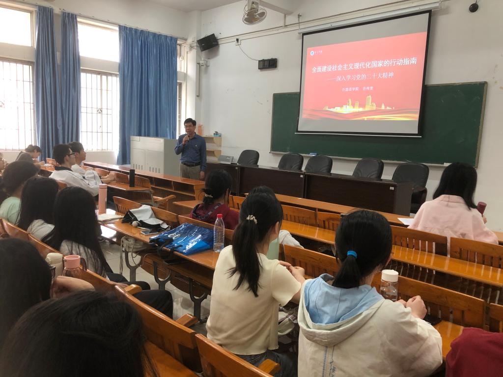 最后,吕书记对入党积极分子们寄予殷切期望,希望同学们应该关心时事政治,谋划未来发展,通过学习贯彻党的二十大精神,强化报效祖国的信念,立大志,立长志,以理论武装头脑,以行动践行理想,以青春淬炼芳华!