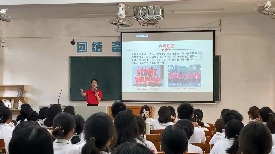 上图:苏潇琳作为2022级新生带班党员开展入党宣讲活动