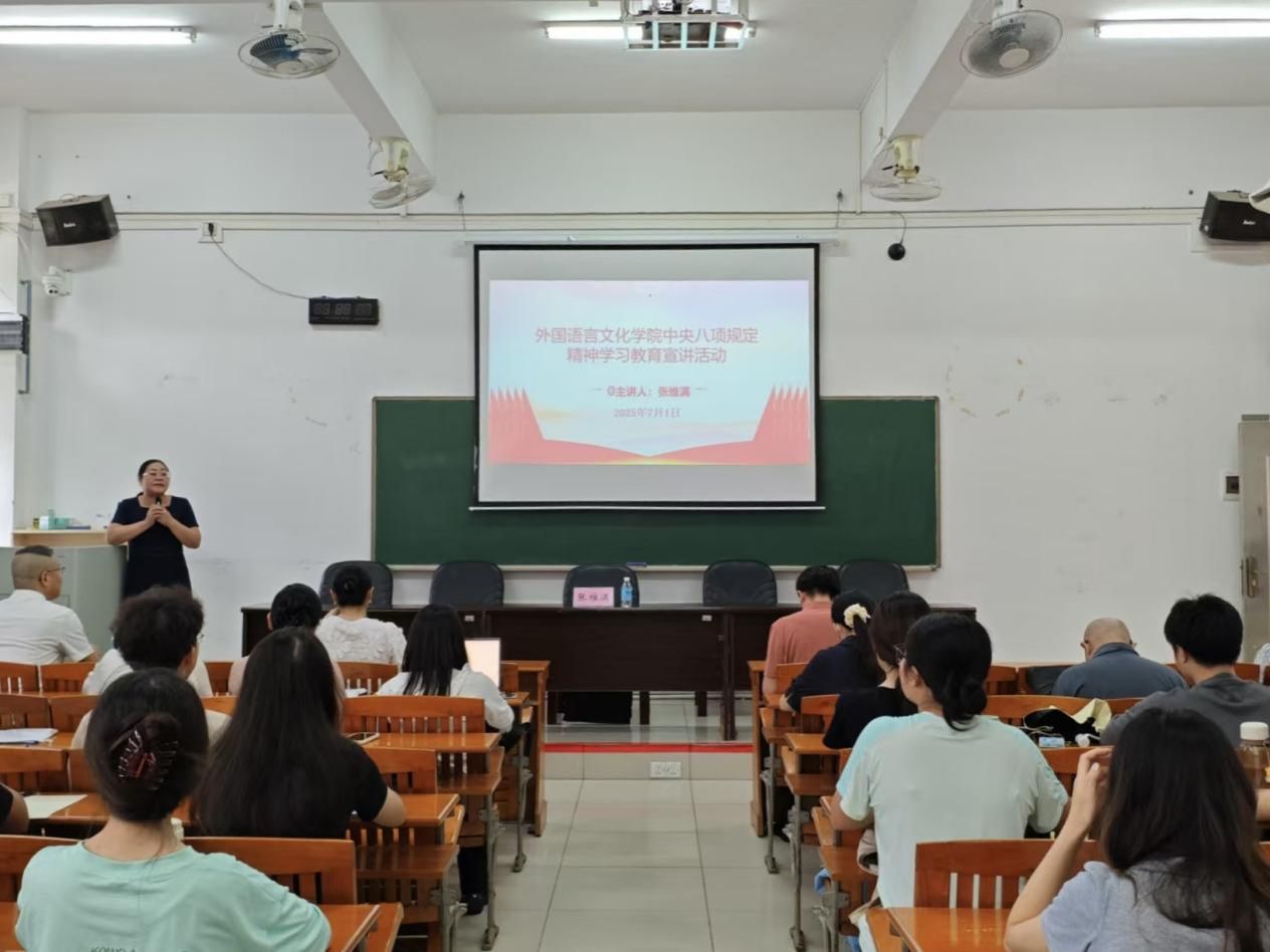 7月1日,公司面向全院师生党员开展 “强化廉洁文化建设 推动八项规定精神落地生根——锲而不舍落实中央八项规定精神” 宣讲活动,邀请马克思主义公司张维满副教授从三方面讲授:一讲廉洁是党的立身之本,阐释廉洁内涵;二剖析党员干部违纪违法案例,揭示不廉根源;三指明廉洁从政行动路径,引导党员干部锤炼党性。活动旨在深化作风建设,推进八项规定精神落地。