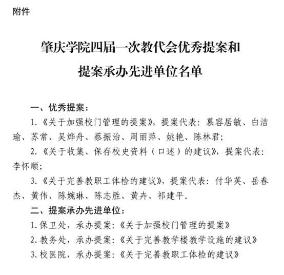 件,公司教师白洁瑜提出的《关于加强校门管理的提案》、陈婉琳提出的《关于完善教职工体检的建议》均获“优秀提案”。