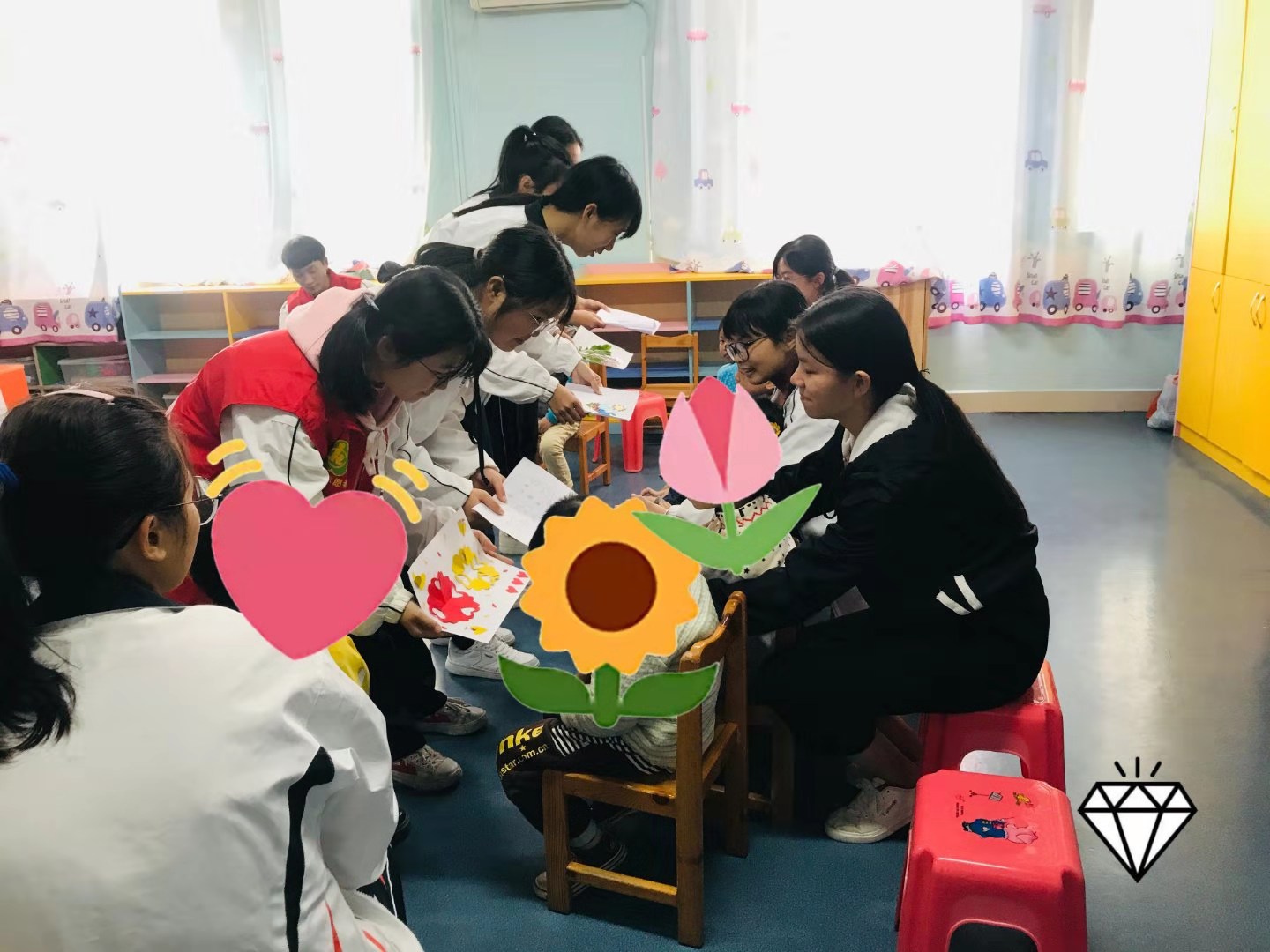 同学们通过参与本次活动,减轻了自身压力,在制作过程中使心灵得到放松,同时激发了无限的创造力。在“小海龟”活动中,同学们接触到了可爱的孩子们,通过赠与孩子们美丽的爱心图案,建立起了心灵的联系。
