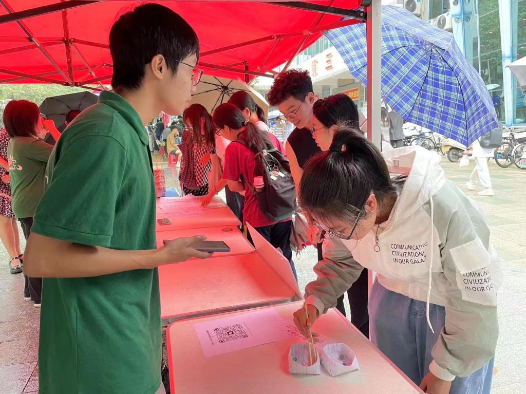 2023年4月13中午,本次活动在校道上摆摊宣传,吸引了很多同学前来打卡参与。本次“全民健身”打卡的时间为2023年4月14日至4月28日,同学们将步道乐跑或keep软件的运动公里数截图上传至“小打卡”微信小程序,坚持到最后打卡积分前二十名的同学可以获得精美奖品。经过工作人员们的筛选,选取了三位同学在活动期间拍摄运动过程的风景照作为优秀作品,并给与奖励。